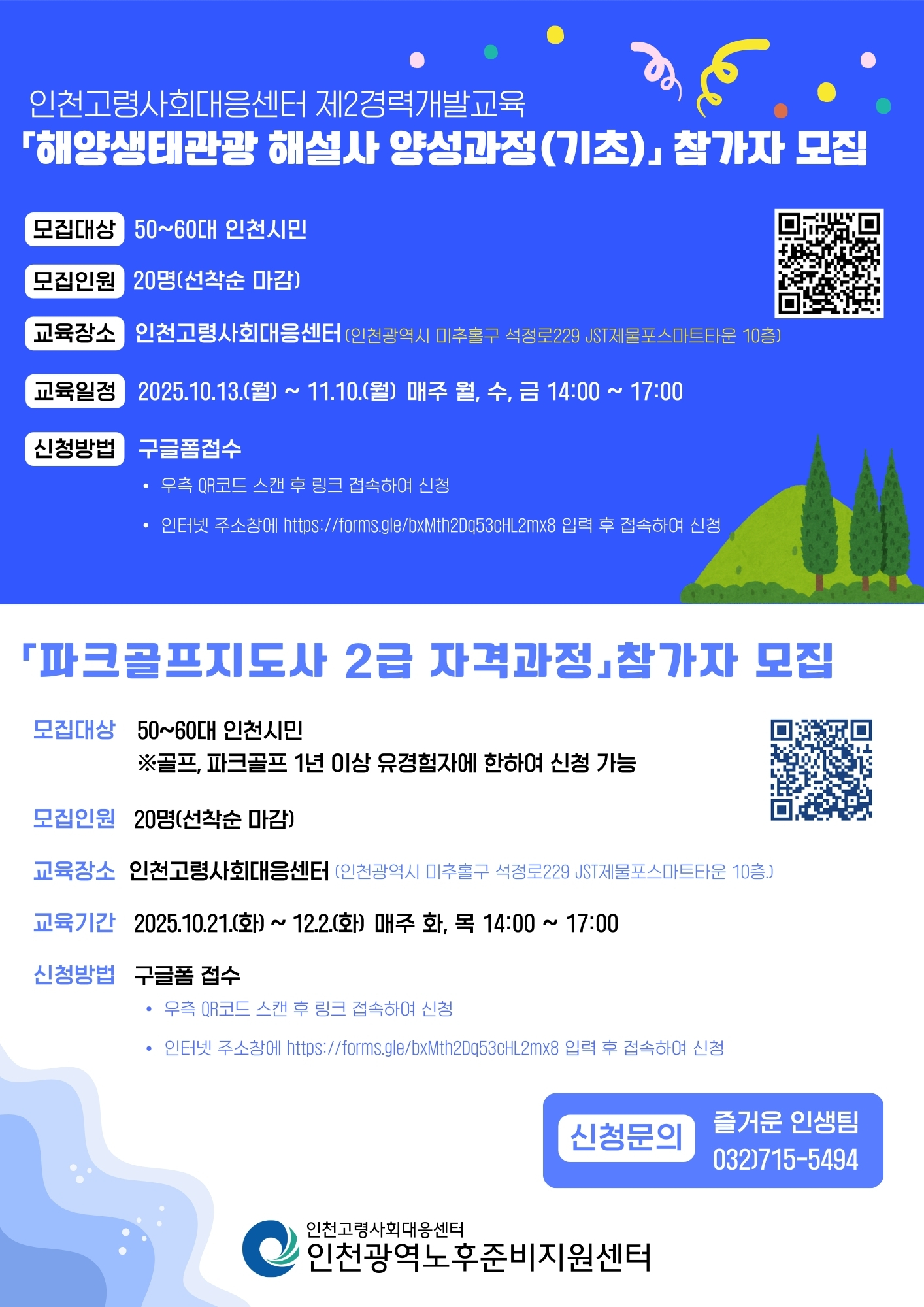 2025년 하반기 제2경력개발교육 [해양생태관광 해설사 양성과정(기초), 파크골프지도자 자격과정] 참가자 모집 안내