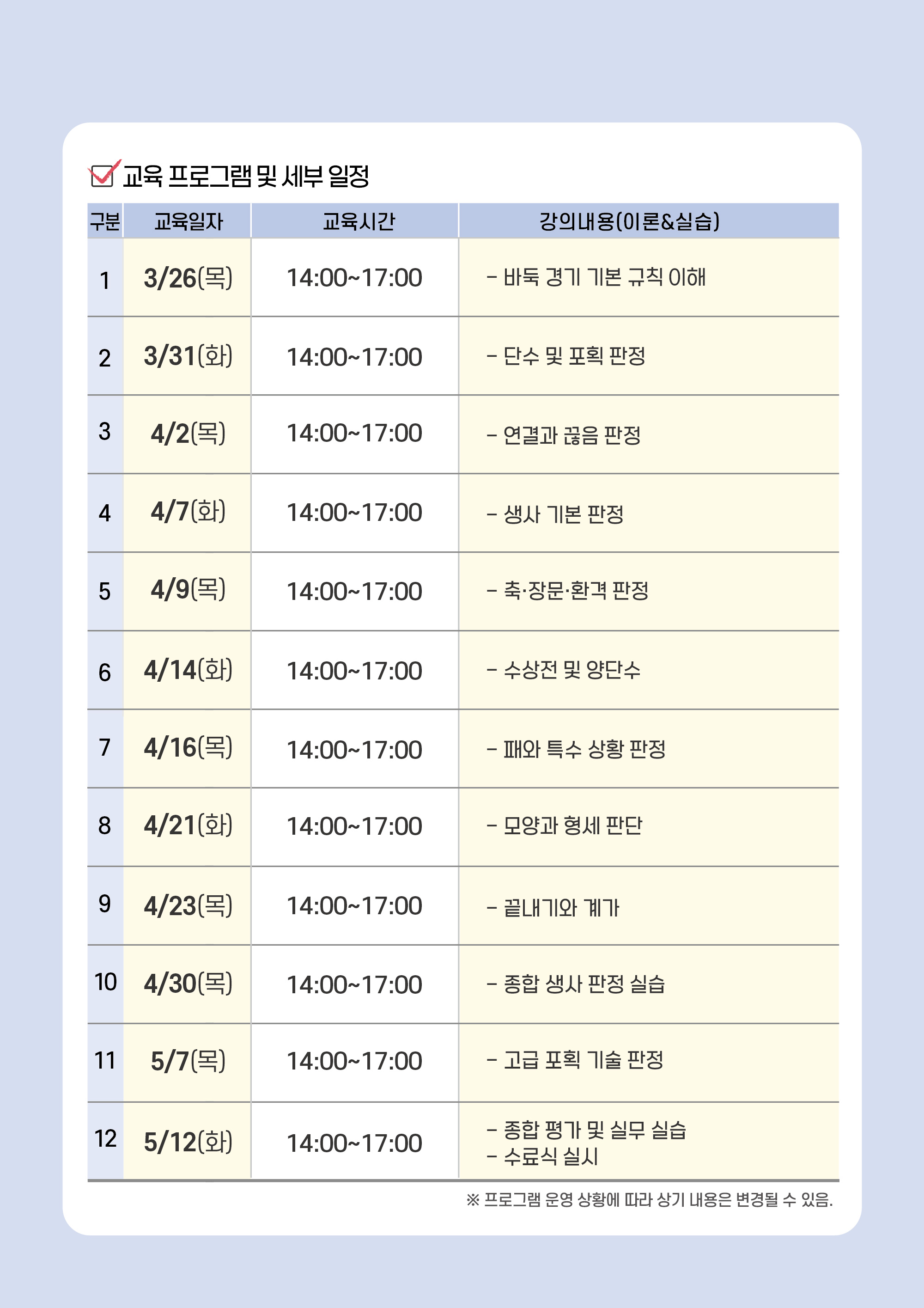 2026년 제2경력개발교육(바둑 심판 보조인력 양성과정) 참여자 모집 안내