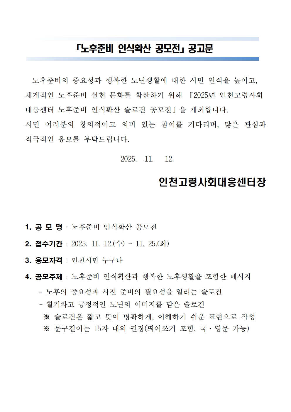 2025년 노후준비 인식확산 슬로건 공모전 공고