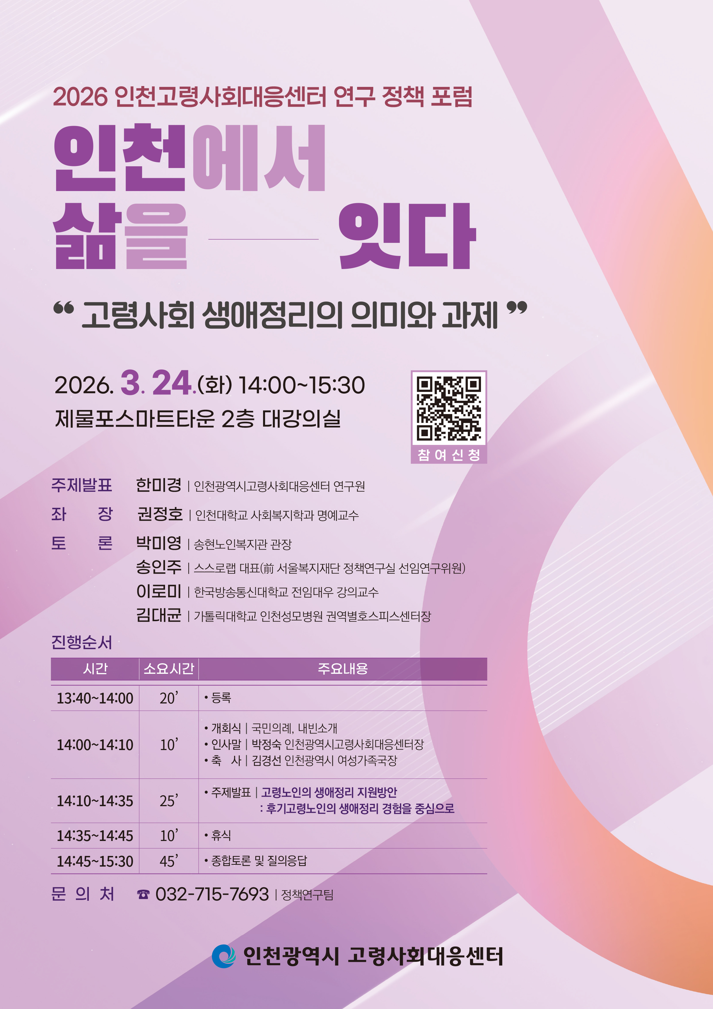 [2026 연구 정책 포럼]인천에서 삶을 잇다 – 고령사회 생애정리의 의미와 과제