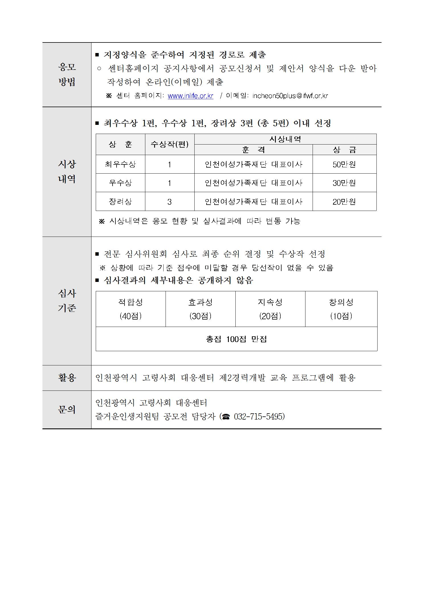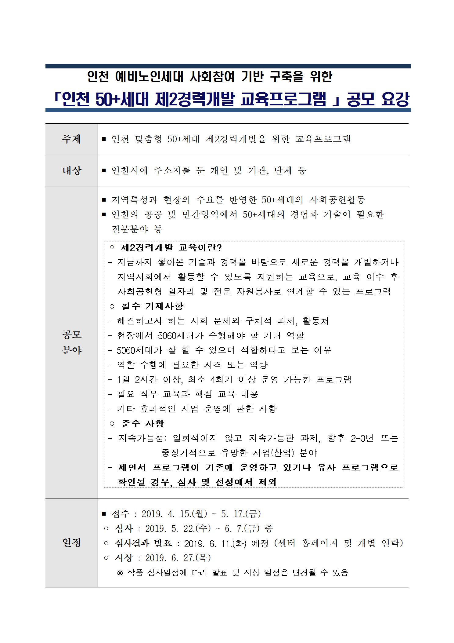 인천 50+세대 제2경력개발 교육프로그램 공모전 안내